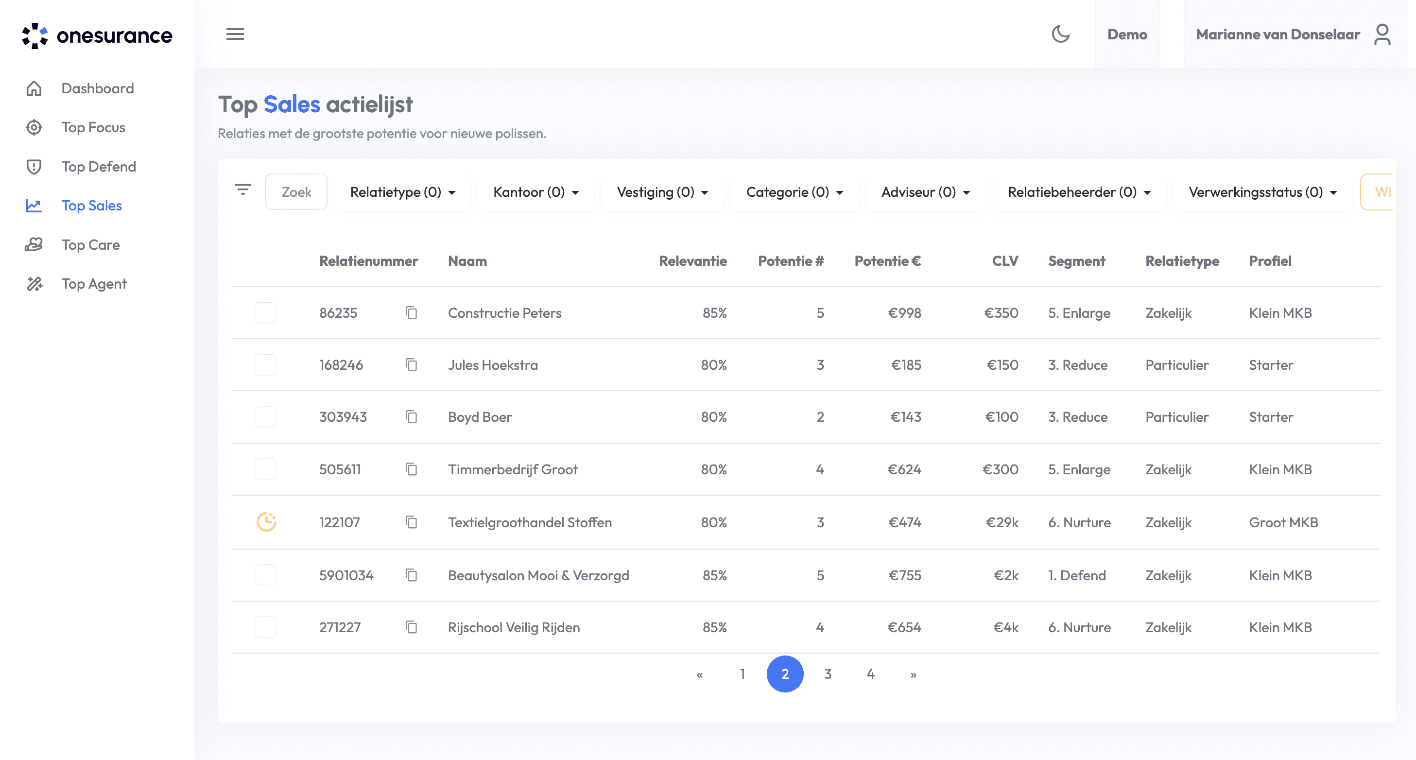 Top Focus ist da: eine Aktionsliste, in der Top Sales Top Defend . Beziehungen werden automatisch anhand einer kombinierten Punktzahl priorisiert, und mehrere Signale (Sales, Defend und Care) sind sofort sichtbar. Die Konfiguration bleibt pro Modul – der Workflow wird einfacher.