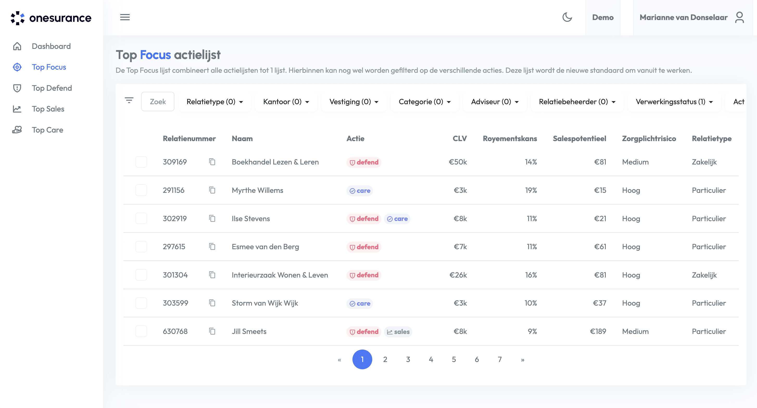 Top Focus: eine kombinierte Aktionsliste für Top Sales Top Defend